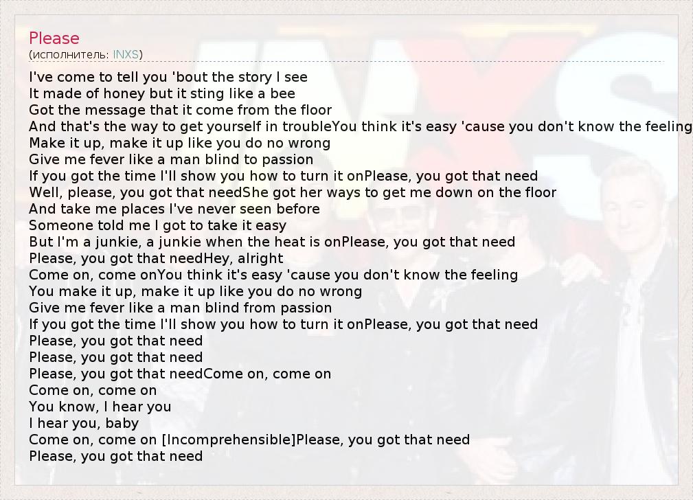 Это интересно:INXS — австралийская рок-группа, образованная 16 августа 1977 года в Сиднее, первоначально играла смесь фанк-рока, ска и регги.История этой группы началась в 1977 году с "семейного" проекта "The Farriss Brothers", в который вошли три брата Фаррисса: Тим (р. 16 августа 1957; гитара), Джон (р. 18 августа 1961; ударные), Эндрю (р. 27 марта 1959; клавишные), а также Майкл Хатченс (р. 22 января 1960, у. 22 ноября 1997; вокал),... продолжение