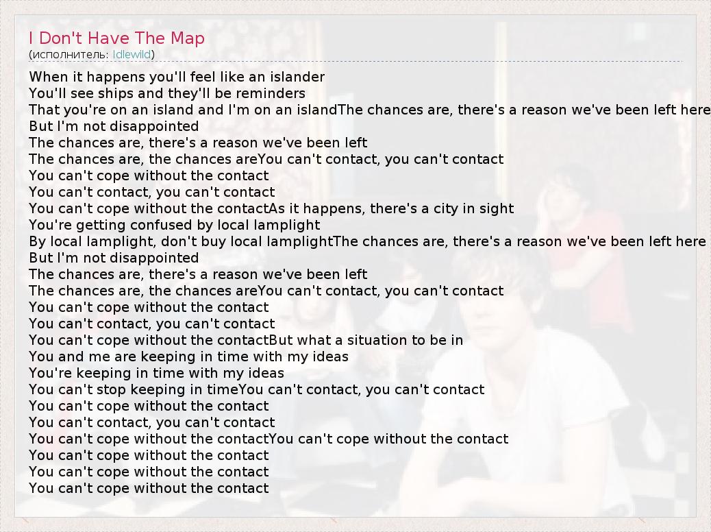 А как ты думаешь, о чем песня "I Don't Have The Map" ?