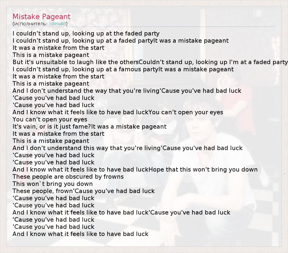А как ты думаешь, о чем песня "Mistake Pageant" ?