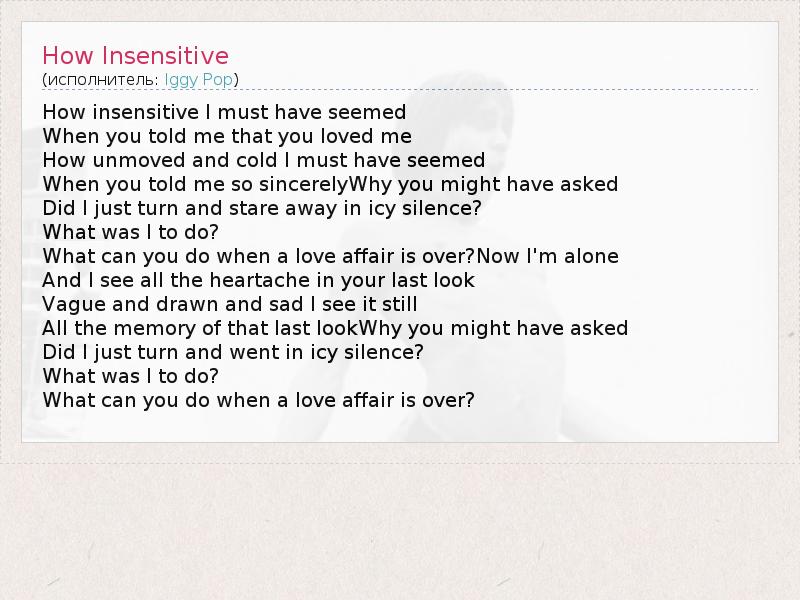 А как ты думаешь, о чем песня "How Insensitive" ?