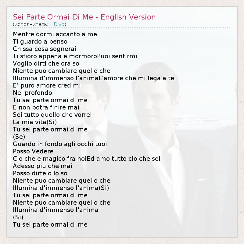 ГлавнаяИсполнителиIl DivoSei Parte Ormai Di Me - English Version