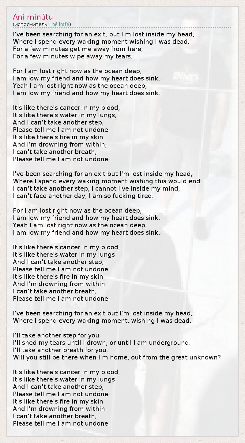 А как ты думаешь, о чем песня "Ani minútu" ?