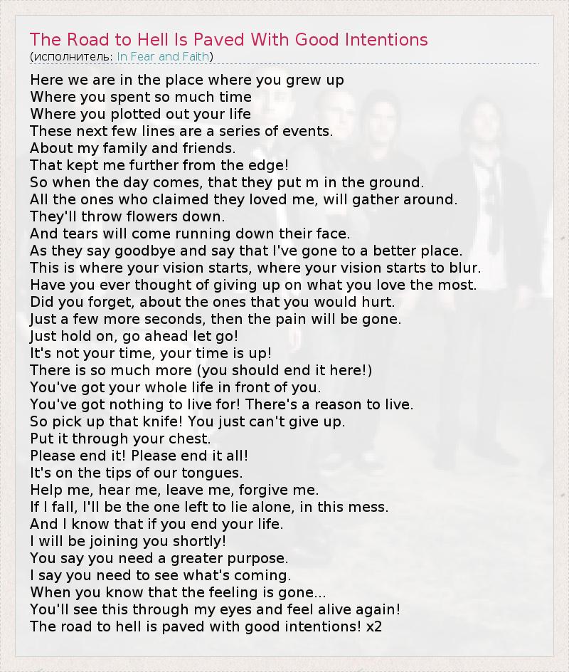 ГлавнаяИсполнителиIn Fear and FaithThe Road to Hell Is Paved With Good Intentions
