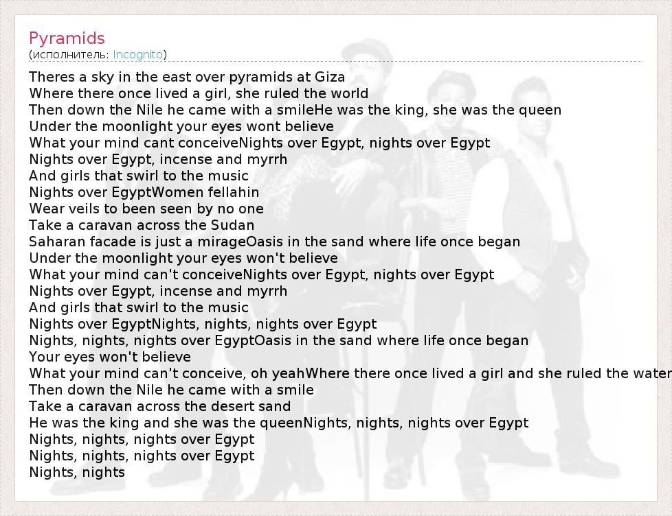 А как ты думаешь, о чем песня "Pyramids" ?