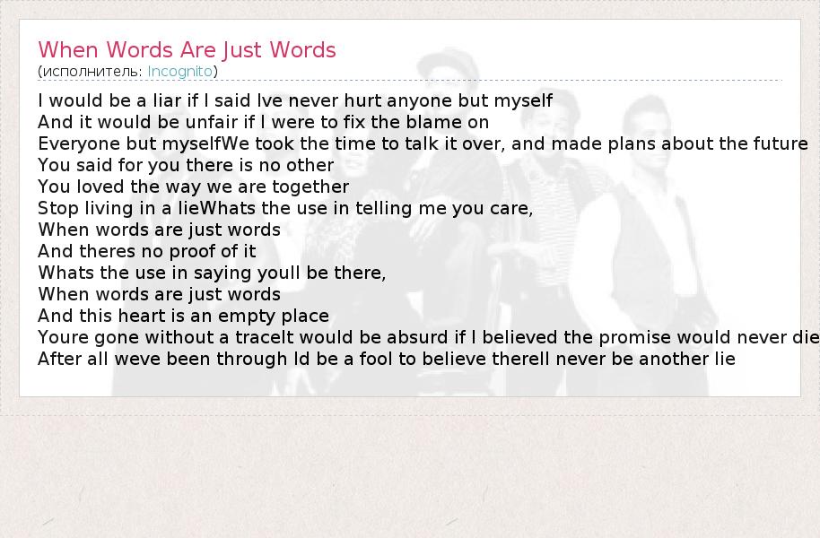 ГлавнаяИсполнителиIncognitoWhen Words Are Just Words