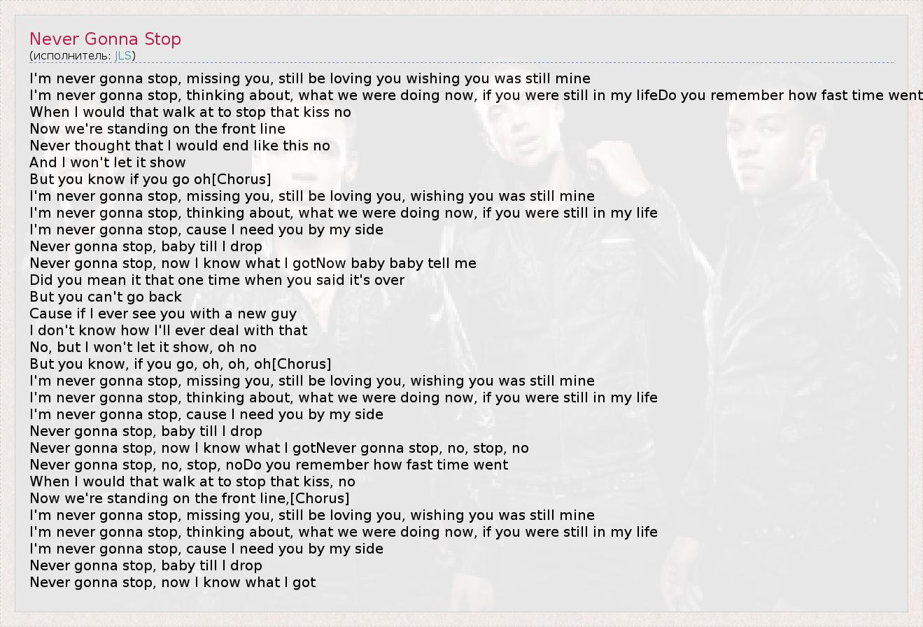 А как ты думаешь, о чем песня "Never Gonna Stop" ?