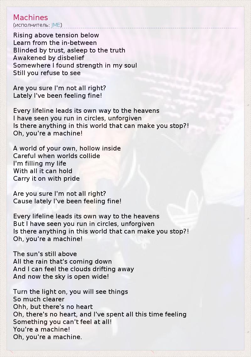 А как ты думаешь, о чем песня "Machines" ?