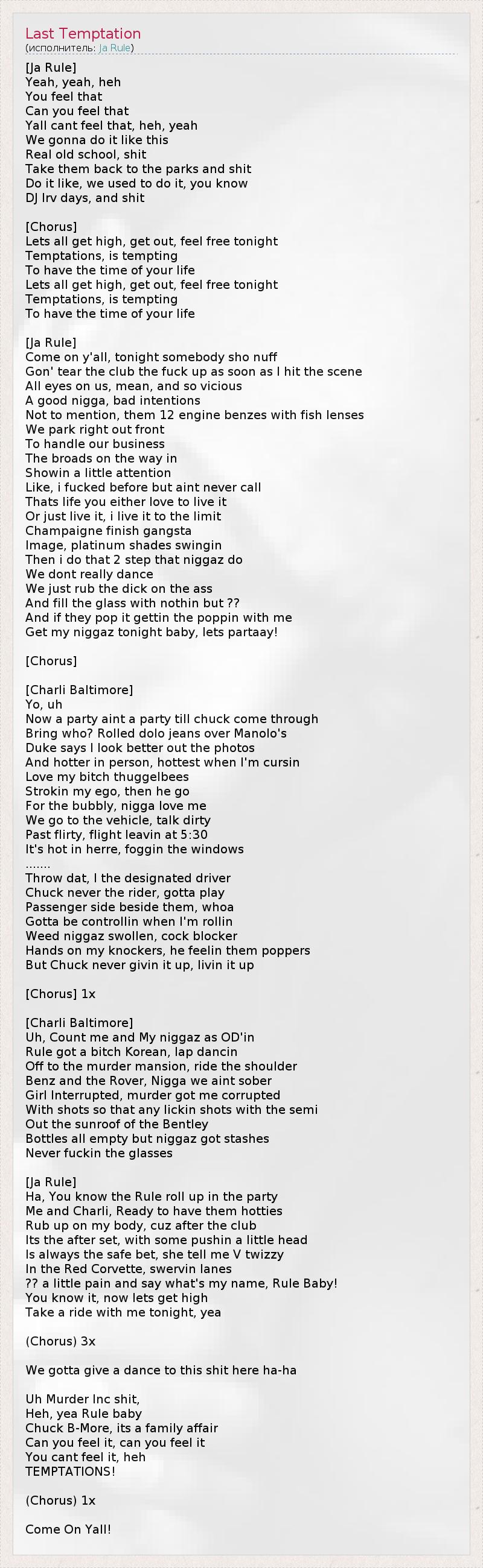 Это интересно:Jeff Atkins (как видно, взявший прозвище Ja Rule по собственным инициалам) родился 29 февраля 1978 года в Нью-Йорке. Рифмовать он начал с 16 лет, записавшись вскоре вместе с уважаемым нью-йоркским рэппером Mic Geronimo. Их совместную песню спродюсировал Irv Gotti, ставший впоследствии партнером Ja Rule в музыкальном бизнесе.Воодушевленный дебютом Ja Rule и двое его друзей задумали команду The Cash Money Click и выпустили... продолжение