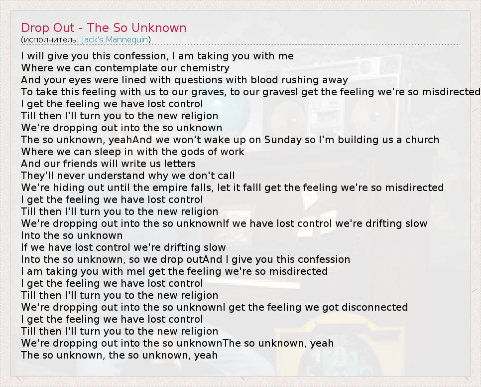 А как ты думаешь, о чем песня "Drop Out - The So Unknown" ?