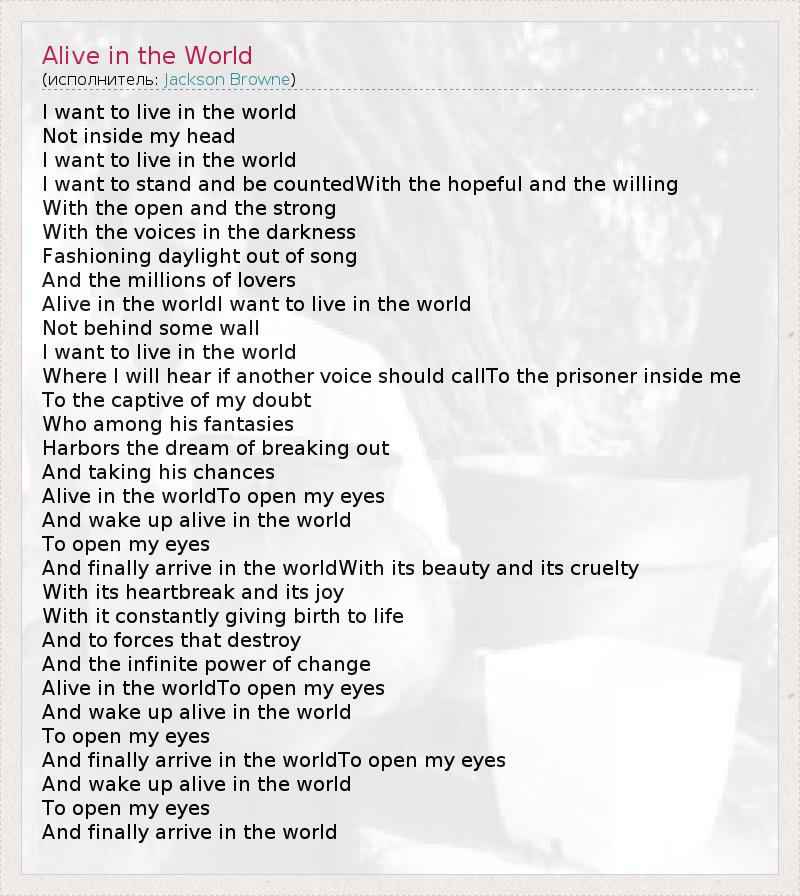 А как ты думаешь, о чем песня "Alive in the World" ?
