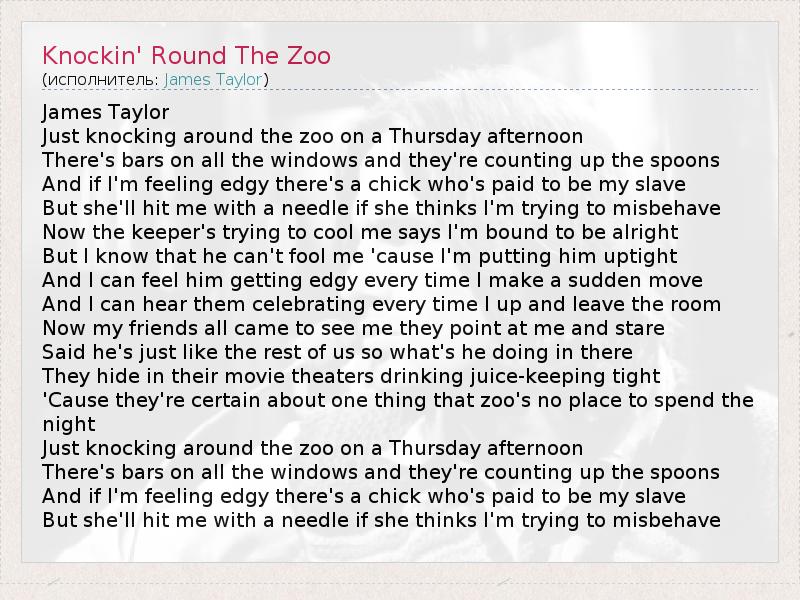 А как ты думаешь, о чем песня "Knockin' Round The Zoo" ?