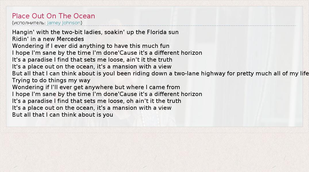 А как ты думаешь, о чем песня "Place Out On The Ocean" ?