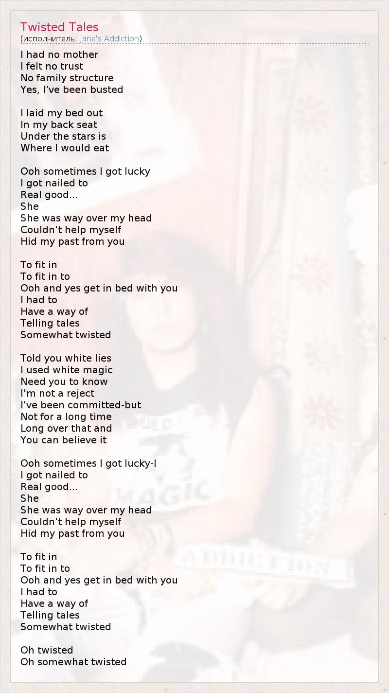 А как ты думаешь, о чем песня "Twisted Tales" ?