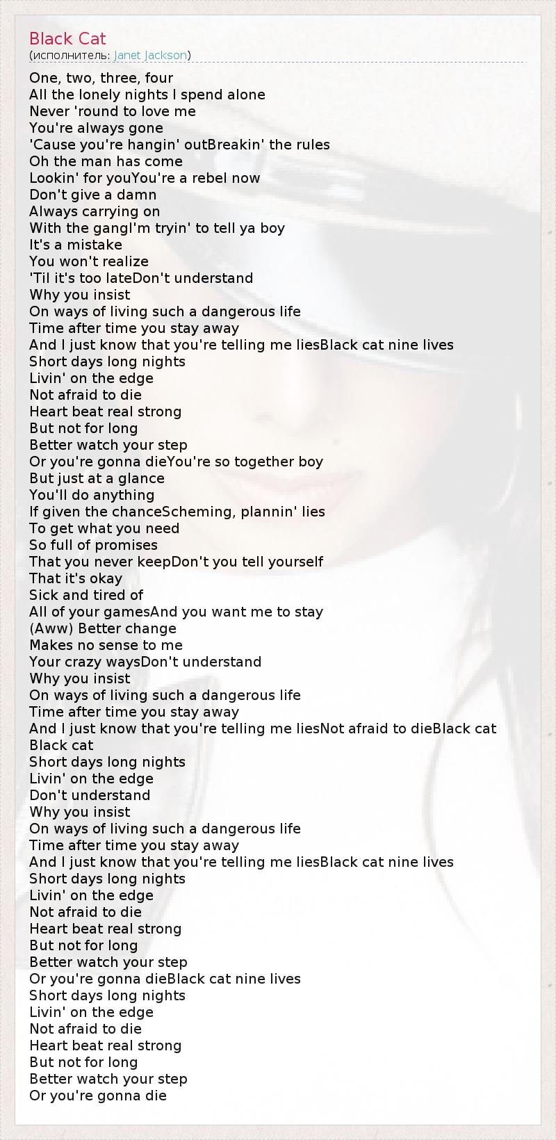 And I just know that you're telling me liesNot afraid to dieBlack cat
