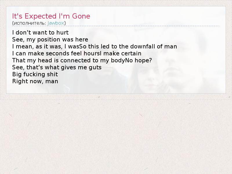 А как ты думаешь, о чем песня "It's Expected I'm Gone" ?
