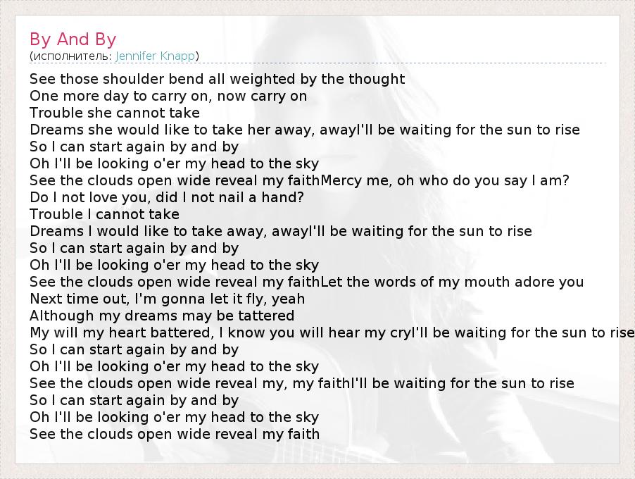 See the clouds open wide reveal my, my faithI'll be waiting for the sun to rise