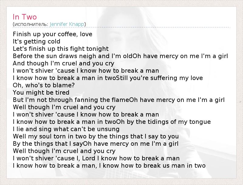 But I'm not through fanning the flameOh have mercy on me I'm a girl