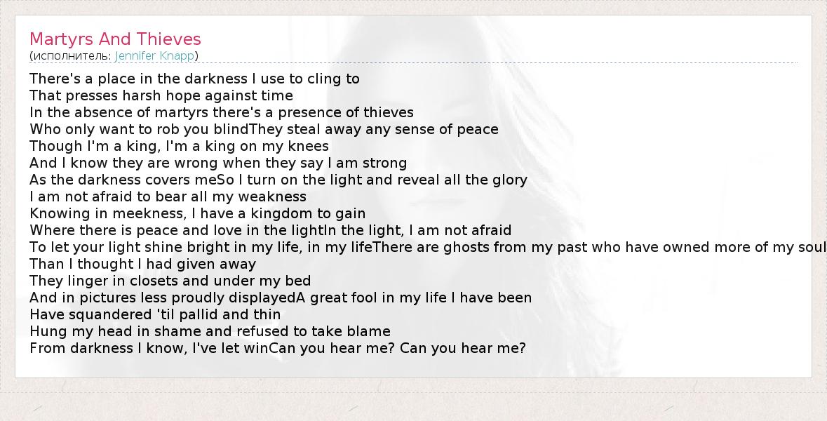 А как ты думаешь, о чем песня "Martyrs And Thieves" ?