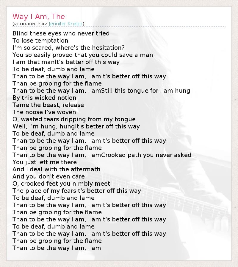 Than to be the way I am, I amCrooked path you never asked