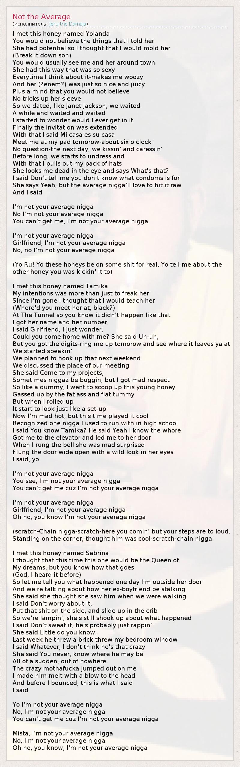 Это интересно:Jeru The Damaja (произносится как "Damager", настоящее имя Kendrick Jeru Davis) - Бруклинский МС, Нью Йорк. Он довольно тесно сотрудничал с Guru и DJ Premier из Gang Starr, которых знал со школьных времён. Ранние годы он провёл в восточной части Нью-Йорка, недалеко от Бруклина, где он рэповал на частных вечеринках с самых ранних лет. Впервые он продемонстрировал свой "хардкор Бруклин стайл" на трэке "Im the... продолжение