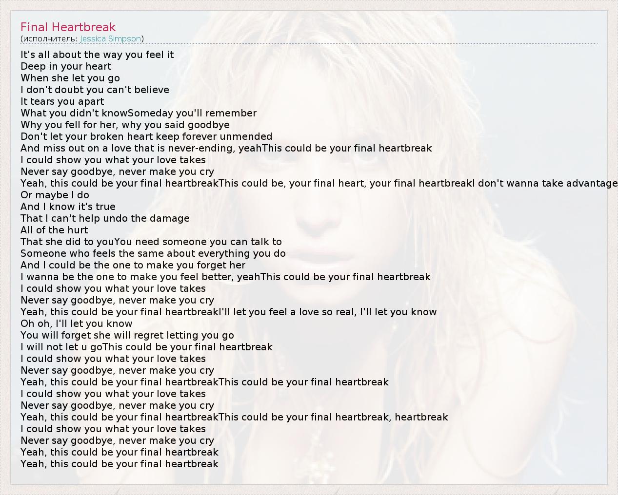Yeah, this could be your final heartbreakThis could be your final heartbreak, heartbreak