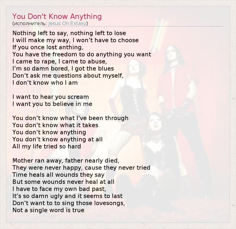 А как ты думаешь, о чем песня "You Don't Know Anything" ?