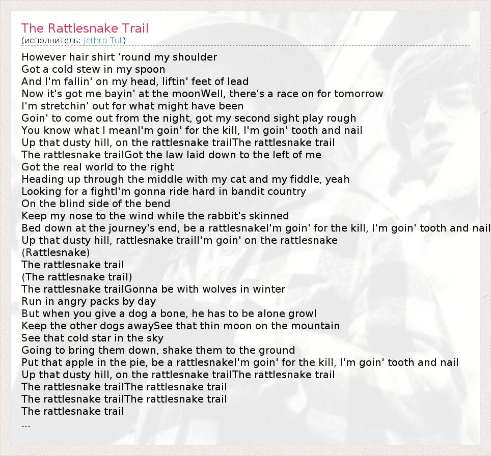 А как ты думаешь, о чем песня "The Rattlesnake Trail" ?