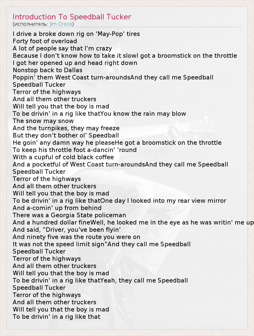 ГлавнаяИсполнителиJim CroceIntroduction To Speedball Tucker