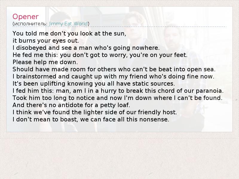 А как ты думаешь, о чем песня "Opener" ?