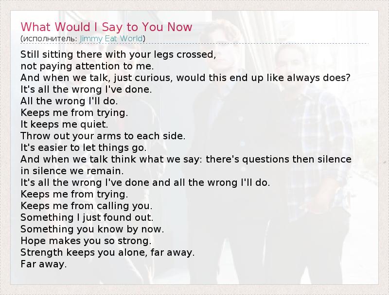 А как ты думаешь, о чем песня "What Would I Say to You Now" ?