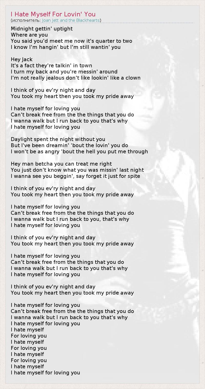 А как ты думаешь, о чем песня "I Hate Myself For Lovin' You" ?