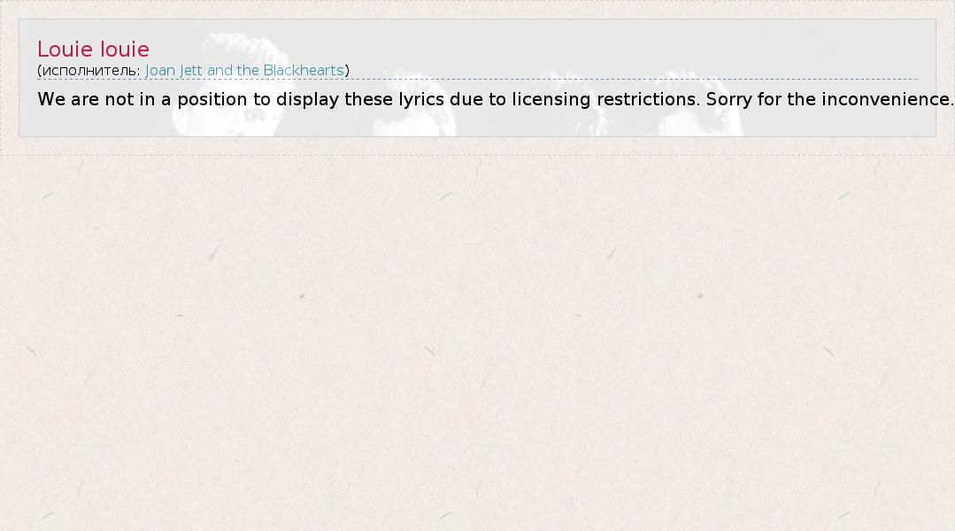We are not in a position to display these lyrics due to licensing restrictions. Sorry for the inconvenience.