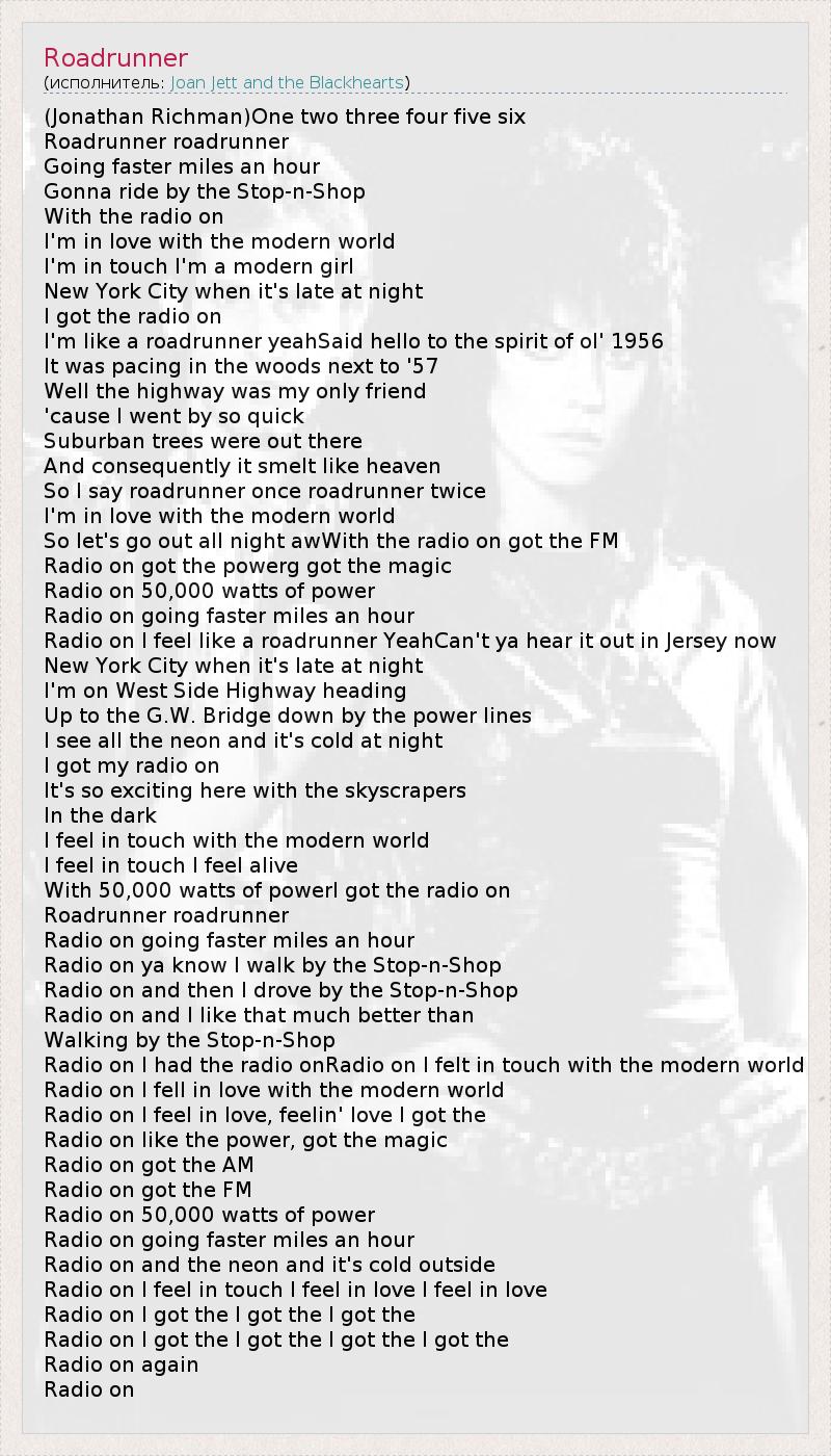 А как ты думаешь, о чем песня "Roadrunner" ?