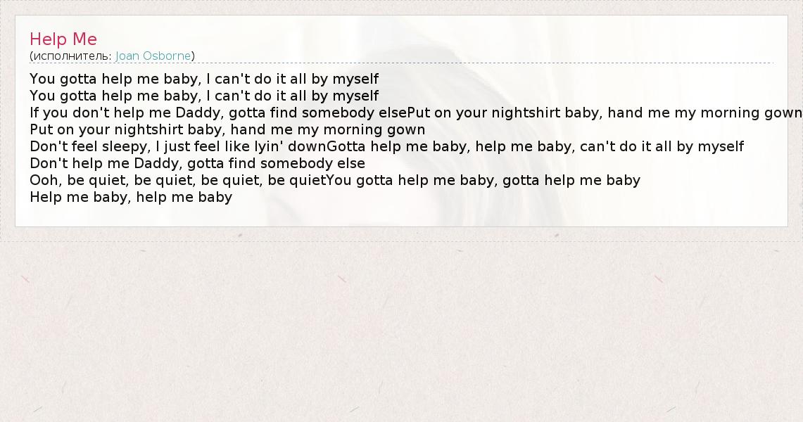 Ooh, be quiet, be quiet, be quiet, be quietYou gotta help me baby, gotta help me baby