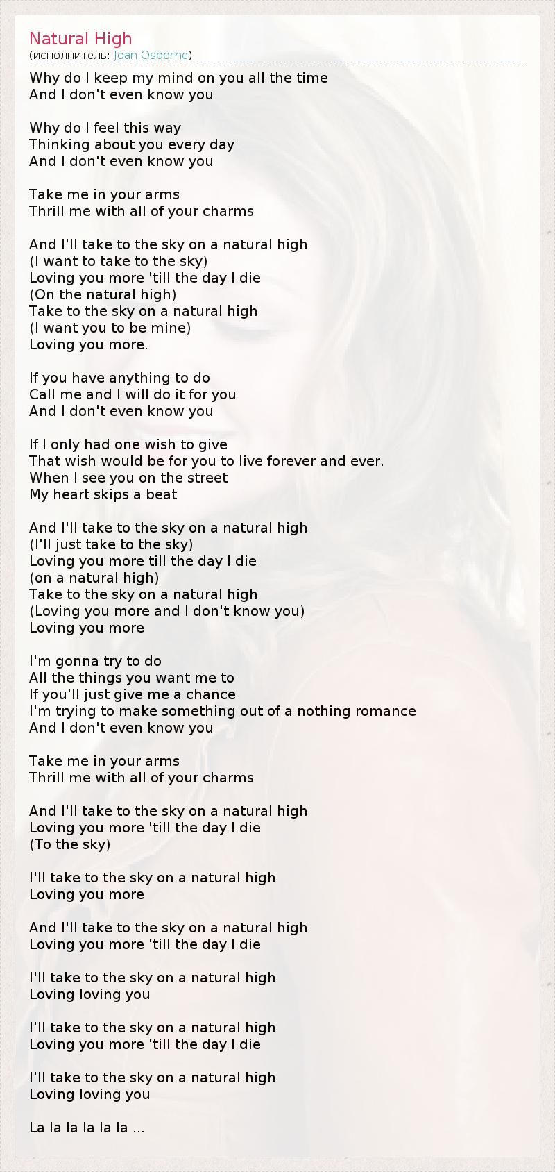 А как ты думаешь, о чем песня "Natural High " ?
