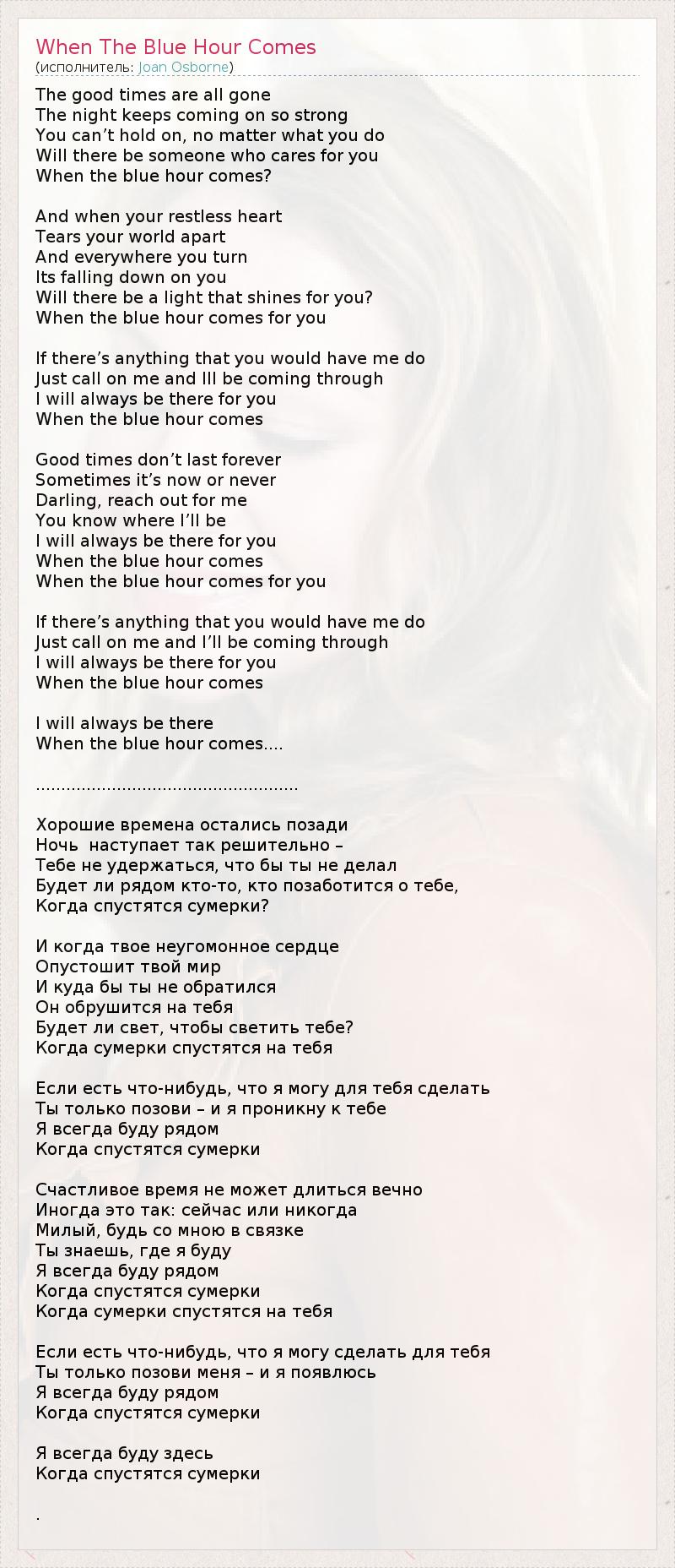А как ты думаешь, о чем песня "When The Blue Hour Comes" ?