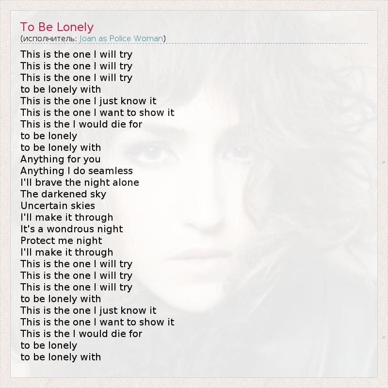 А как ты думаешь, о чем песня "To Be Lonely" ?