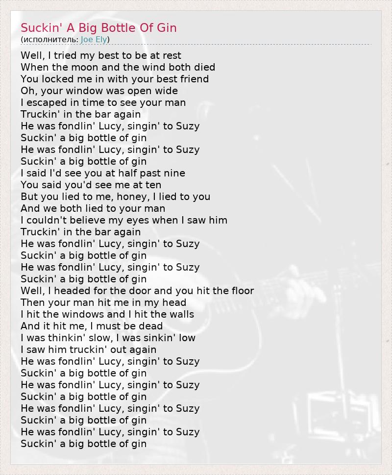 ГлавнаяИсполнителиJoe ElySuckin' A Big Bottle Of Gin