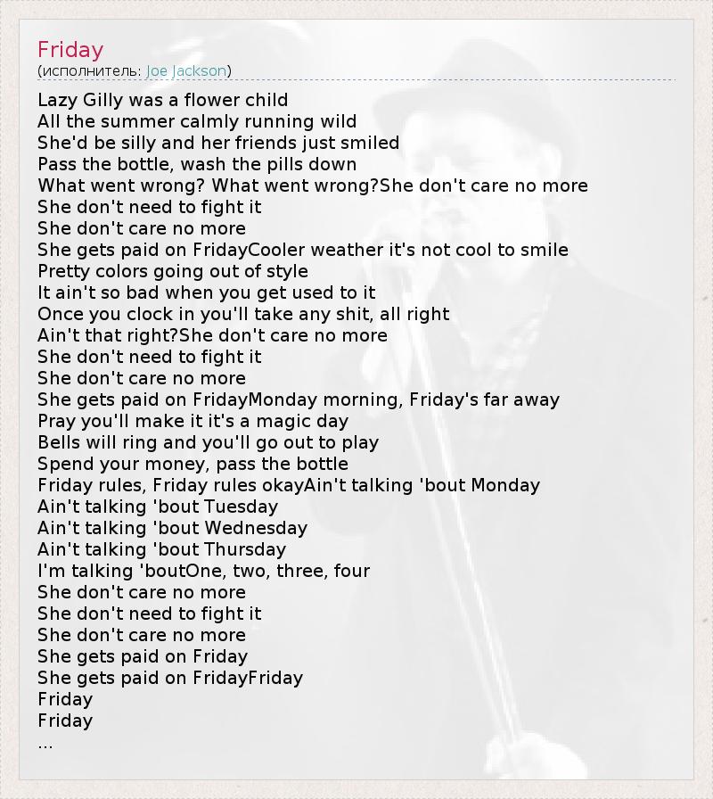 Friday rules, Friday rules okayAin't talking 'bout Monday