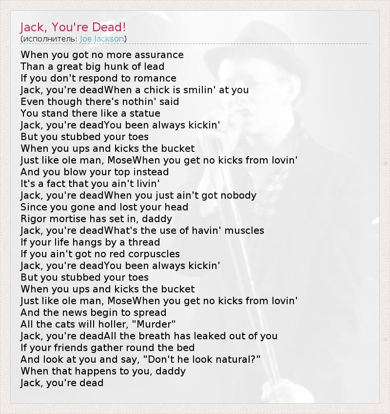А как ты думаешь, о чем песня "Jack, You're Dead!" ?