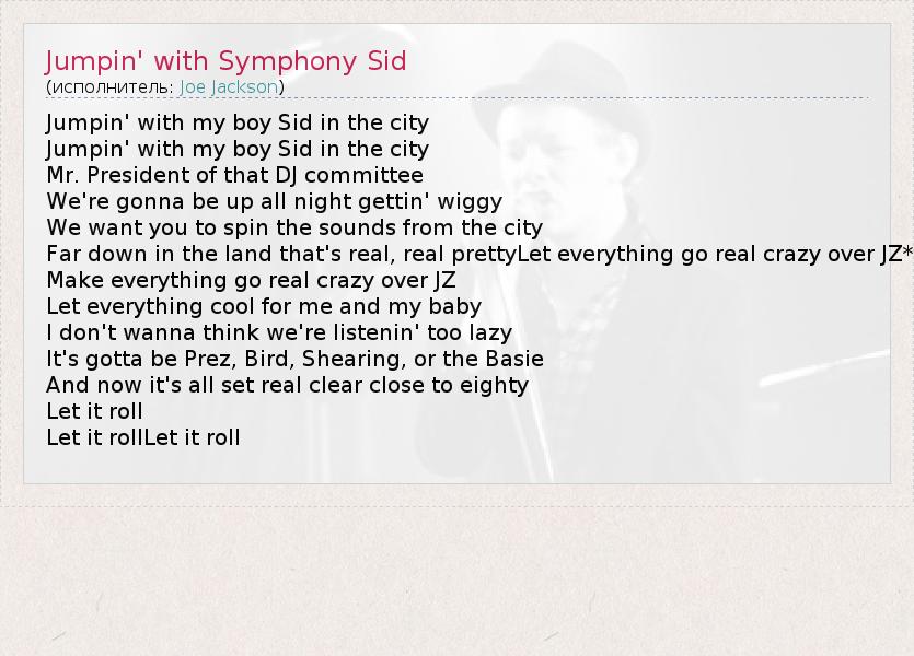 А как ты думаешь, о чем песня "Jumpin' with Symphony Sid" ?