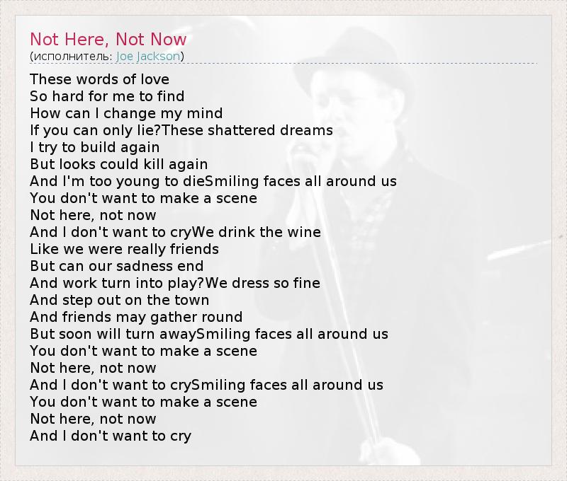 А как ты думаешь, о чем песня "Not Here, Not Now" ?