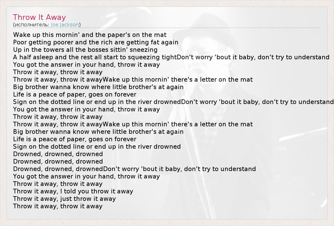 Throw it away, throw it awayWake up this mornin' there's a letter on the mat