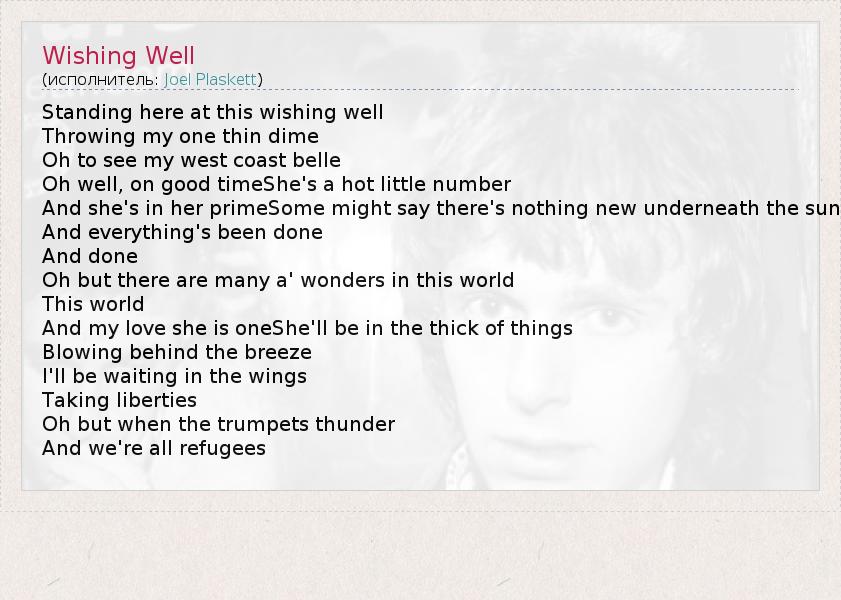 А как ты думаешь, о чем песня "Wishing Well" ?