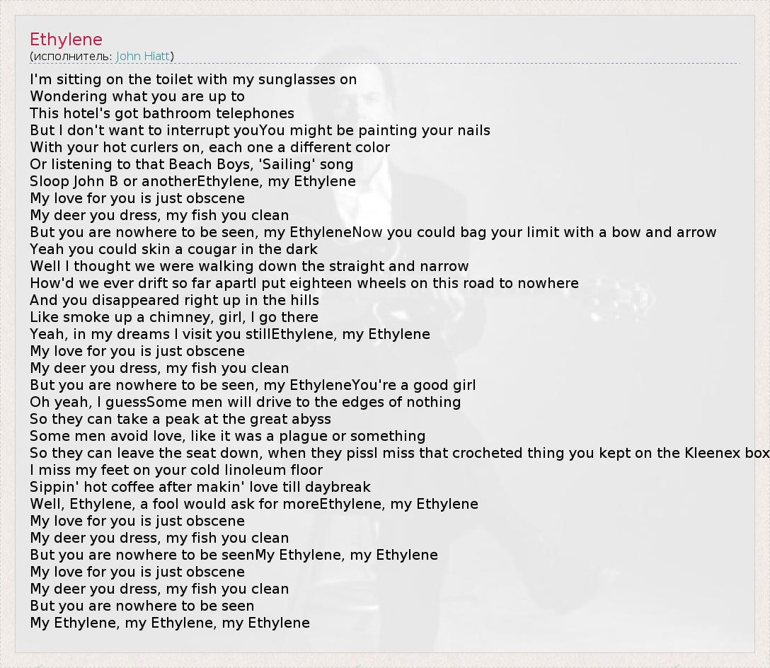 But you are nowhere to be seen, my EthyleneYou're a good girl