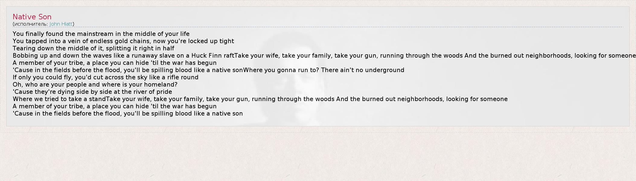 А как ты думаешь, о чем песня "Native Son" ?