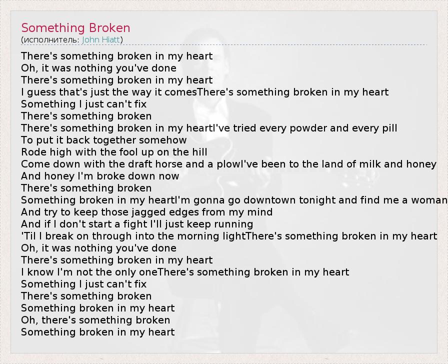 Something broken in my heartI'm gonna go downtown tonight and find me a woman
