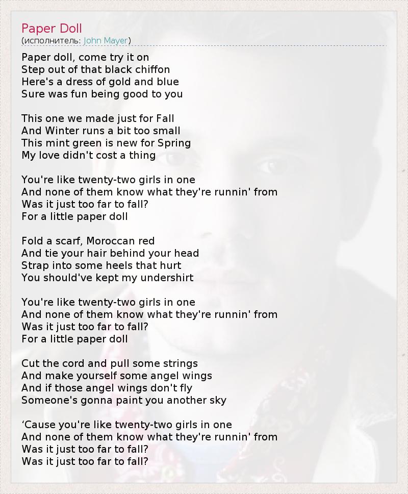 А как ты думаешь, о чем песня "Paper Doll" ?