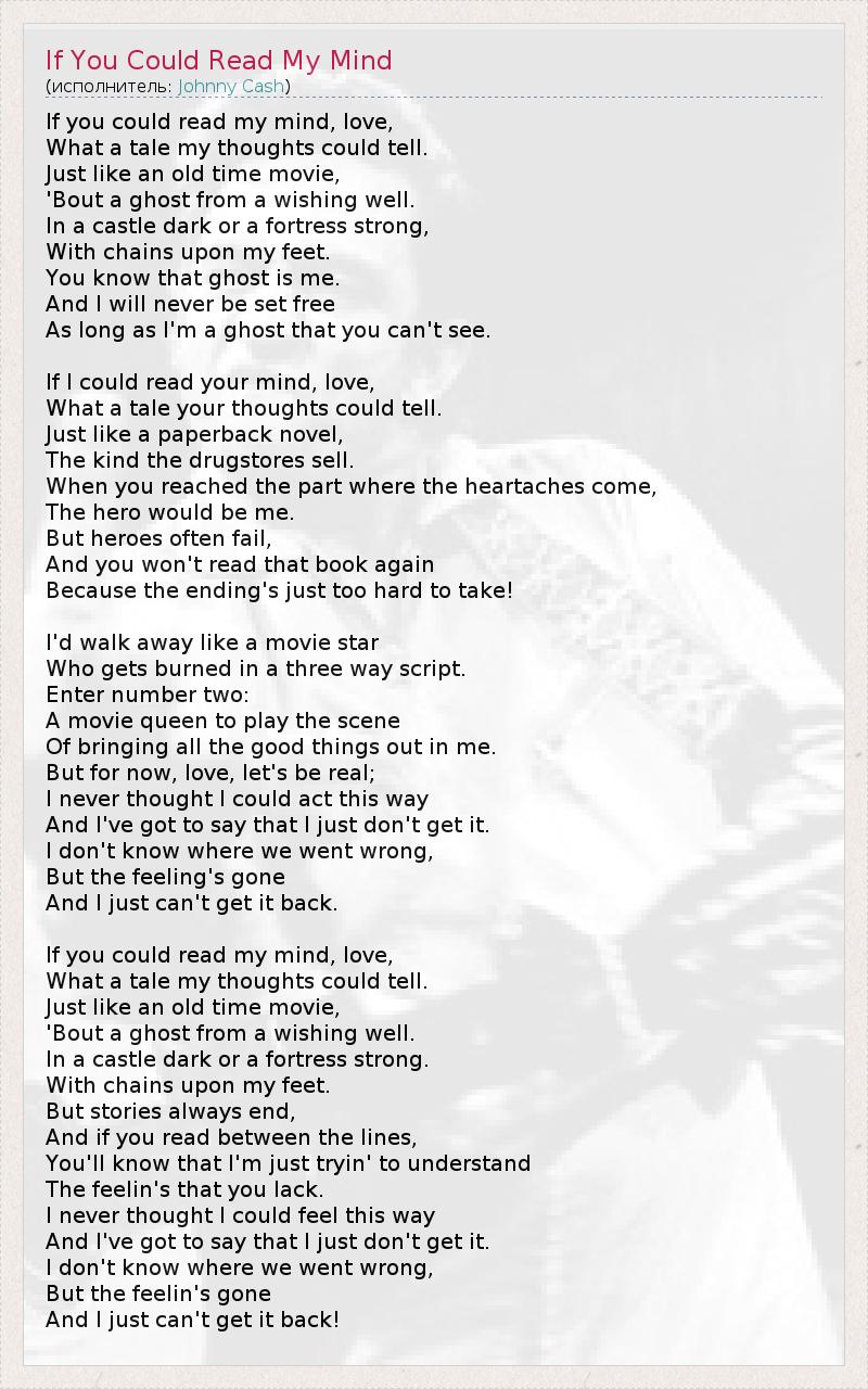 А как ты думаешь, о чем песня "If You Could Read My Mind" ?