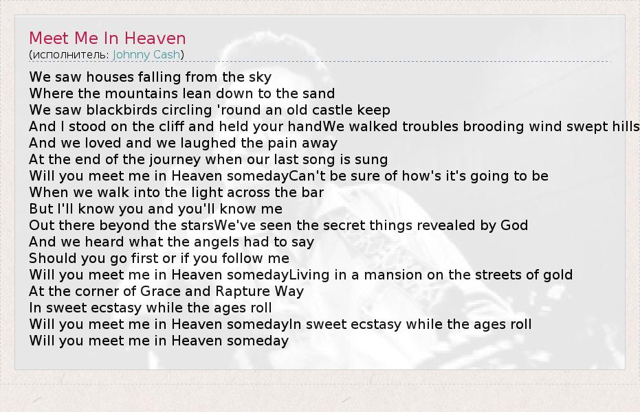 А как ты думаешь, о чем песня "Meet Me In Heaven" ?